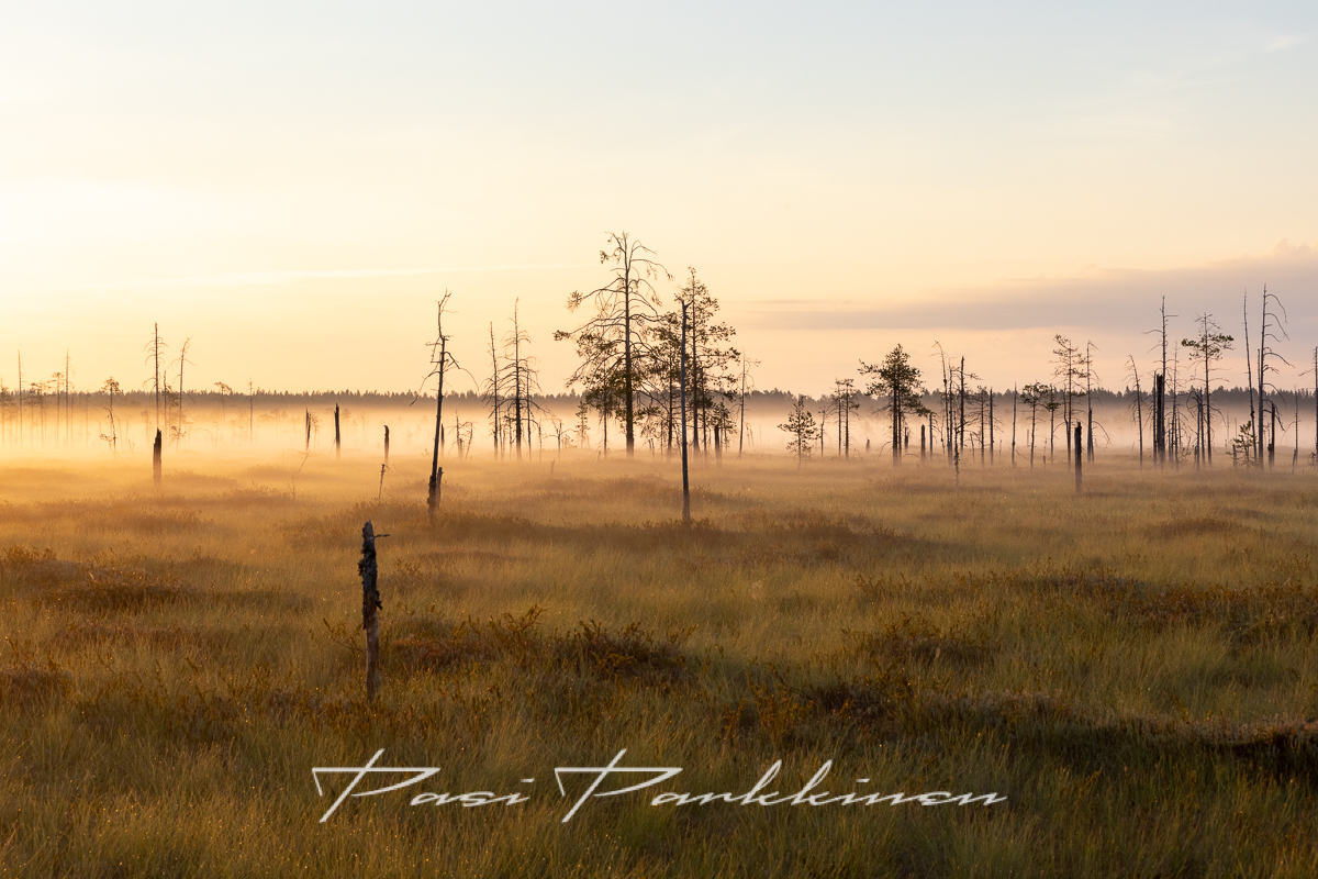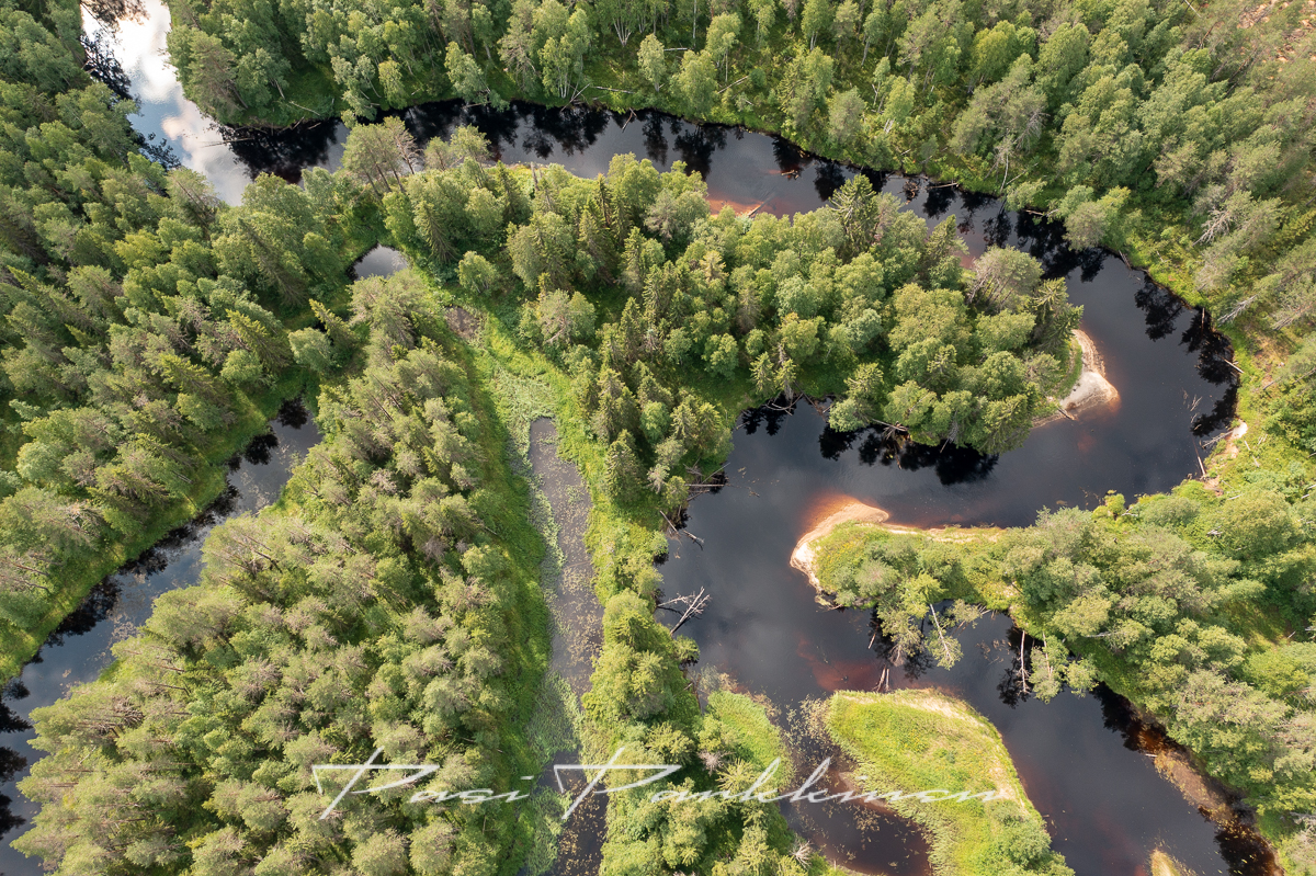 Pohjoinen Taiga: havumetsien ja soiden mosaiikkia lampineen ja tummine jokineen. Pohjois-Karjalan, Kainuun ja Koillismaan ikimetsät ja luonnontilaiset suot vievät kulkijansa aikamatkalle monin paikoin kadonneeseen Kalevalaiseen maisemaan. Tehometsätalouden paineesta huolimatta maassamme on säilynyt- lähinnä luonnonsuojelualueilla edustavia pohjoisen havumetsävyöhykkeen kohteita. Niistä kuvaaja löytää aina uutta, kaikkina vuodenaikoina. Kesäyö ja aamun hetket on minulle parasta aikaa metsissä ja soilla. Galleriassa on myös jonkin verran dronekuvia.
